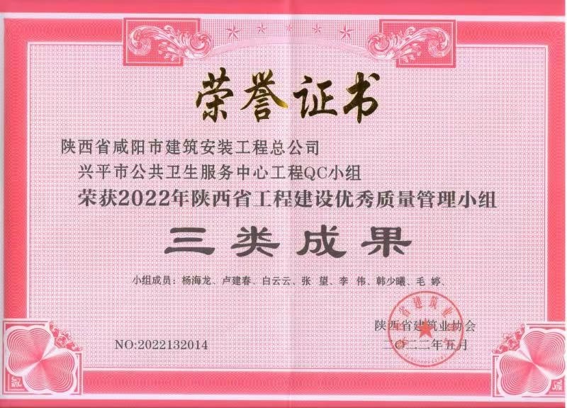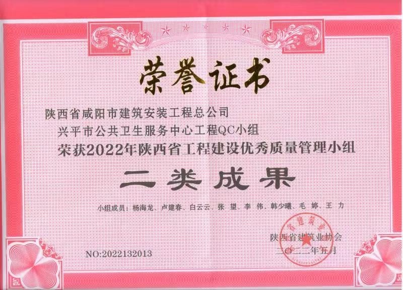 當(dāng)前位置: 首頁 > > 榮譽 > 2022年度QC小組活動成果證書